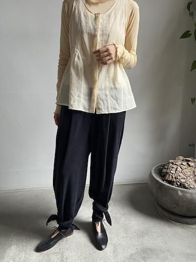 ベルベット裾リボンパンツ(リボン取り外し可能) SS25 カラー: NAVY 素材: 100% VELVET COTTON SIZE: S/ウエスト60cm~80cm(後ろゴム、ドローコード)、 股上38cm、 股下60cm M/ウエスト64cm~82cm(後ろゴム、ドローコード)、 股上38cm、 股下64cm 着用者身長164cm TENNE HANDCRAFTED MODERN商品一覧へ <商品の返品交換について> 不良品以外の返品交換はお断りさせていただいています 商品について不安な点などございましたらご購入前にご質問ください 商品に不良があった場合には商品到着後3日以内にメールかお電話でご連絡ください