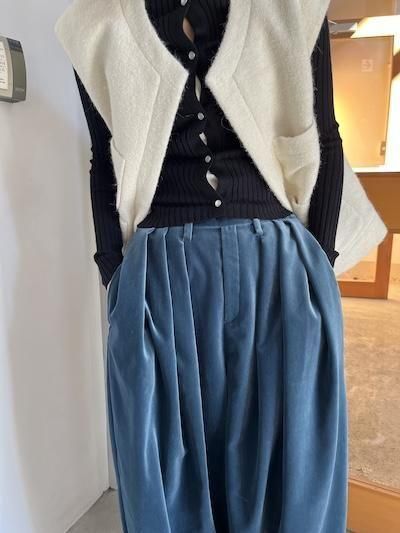 ベルベットワイドパンツ カラー: BLUE 素材: ポリエステル55%、コットン45% SIZE: S / ウエスト60cm~(後ろゴム)、 股上37cm、 股下59cm、総丈93cm M / ウエスト64cm~(後ろゴム)、 股上37cm、 股下61cm、総丈97cm 着用者の身長160cm(Sサイズ着用) TENNE HANDCRAFTED MODERN商品一覧へ <商品の返品交換について> 不良品以外の返品交換はお断りさせていただいています 商品について不安な点などございましたらご購入前にご質問ください 商品に不良があった場合には商品到着後3日以内にメールかお電話でご連絡ください